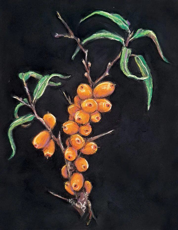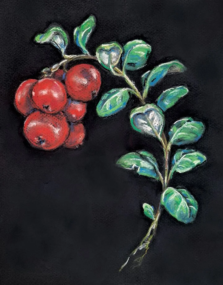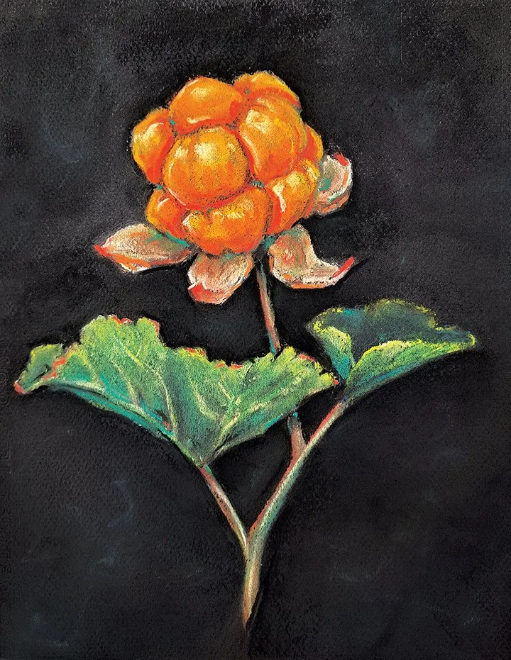 Jutellessamme kävi ilmi, että etiketin pohjaväri oli musta. Siispä ehdotin, että kuvitukset tehtäisiin kuivapastelleilla, jolloin alkuperäiskuvituksen voi piirtää suoraan mustalle paperille. Tällöin kuvituskin istuu luontevasti etiketin mustalle pohjalle.